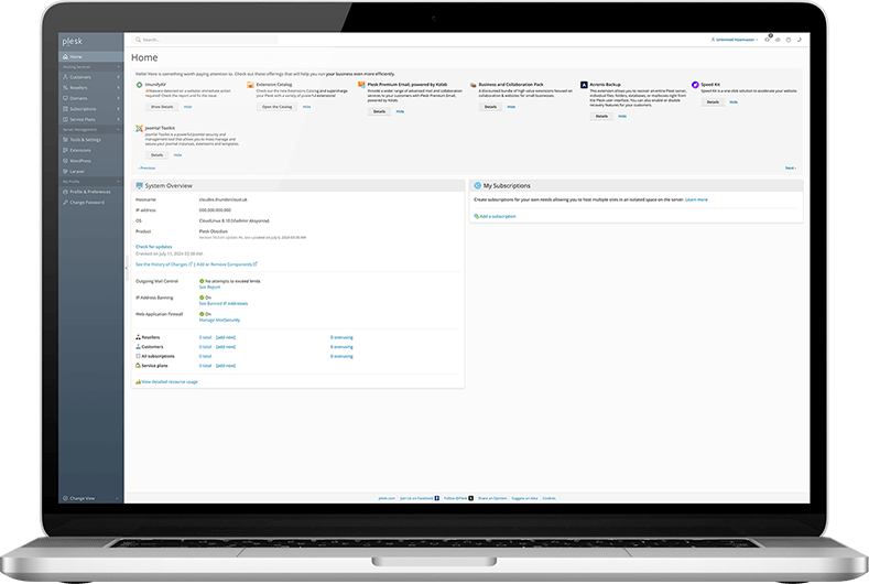 Add Plesk to your VPS from only £8.99/mo (ex VAT).